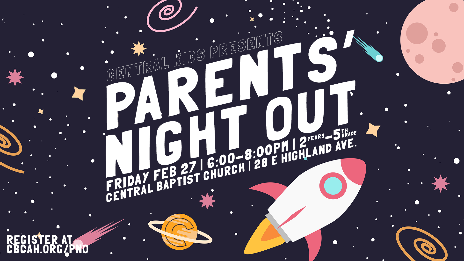 Our team of responsible, seasoned child-care givers will have a great time with your kids so you can go out and have a great time together. Registration is available here. We look forward to seeing your child(ren) at Parents Night Out and for you to get a much deserved night off!